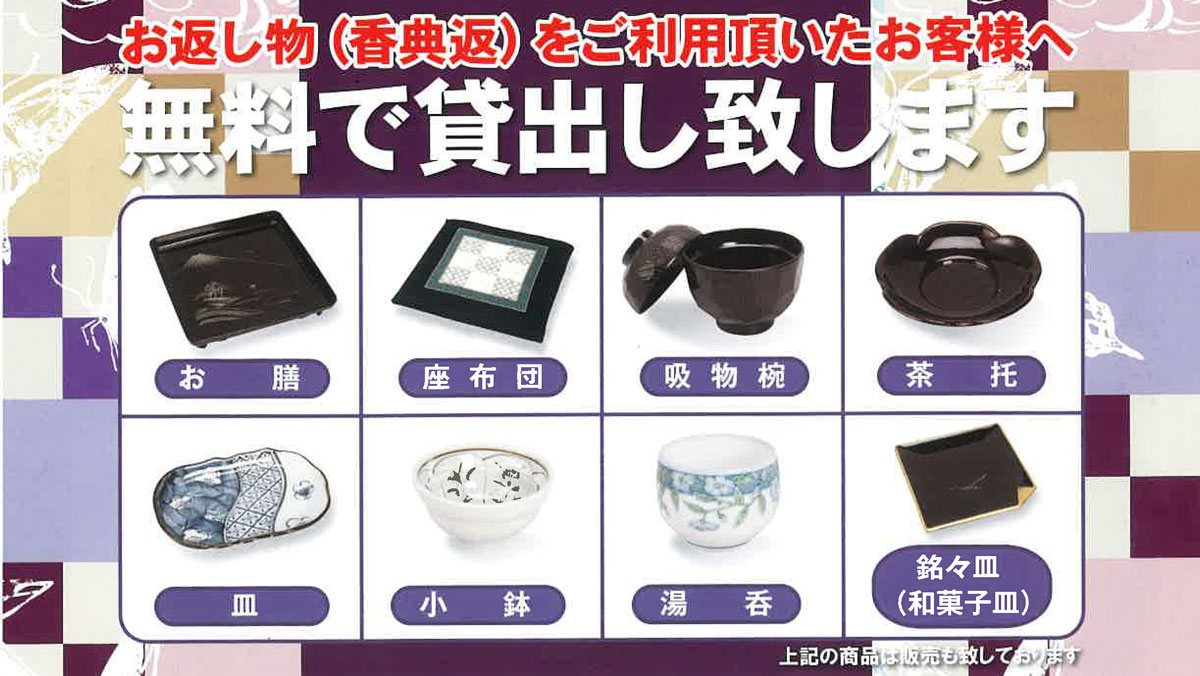 地域や式場によっては、記念品一品から引き菓子など添えたものまで様々です。